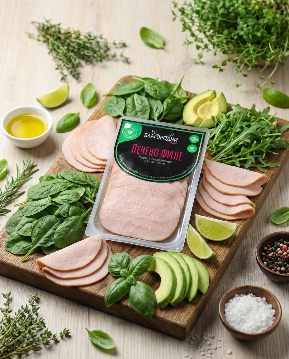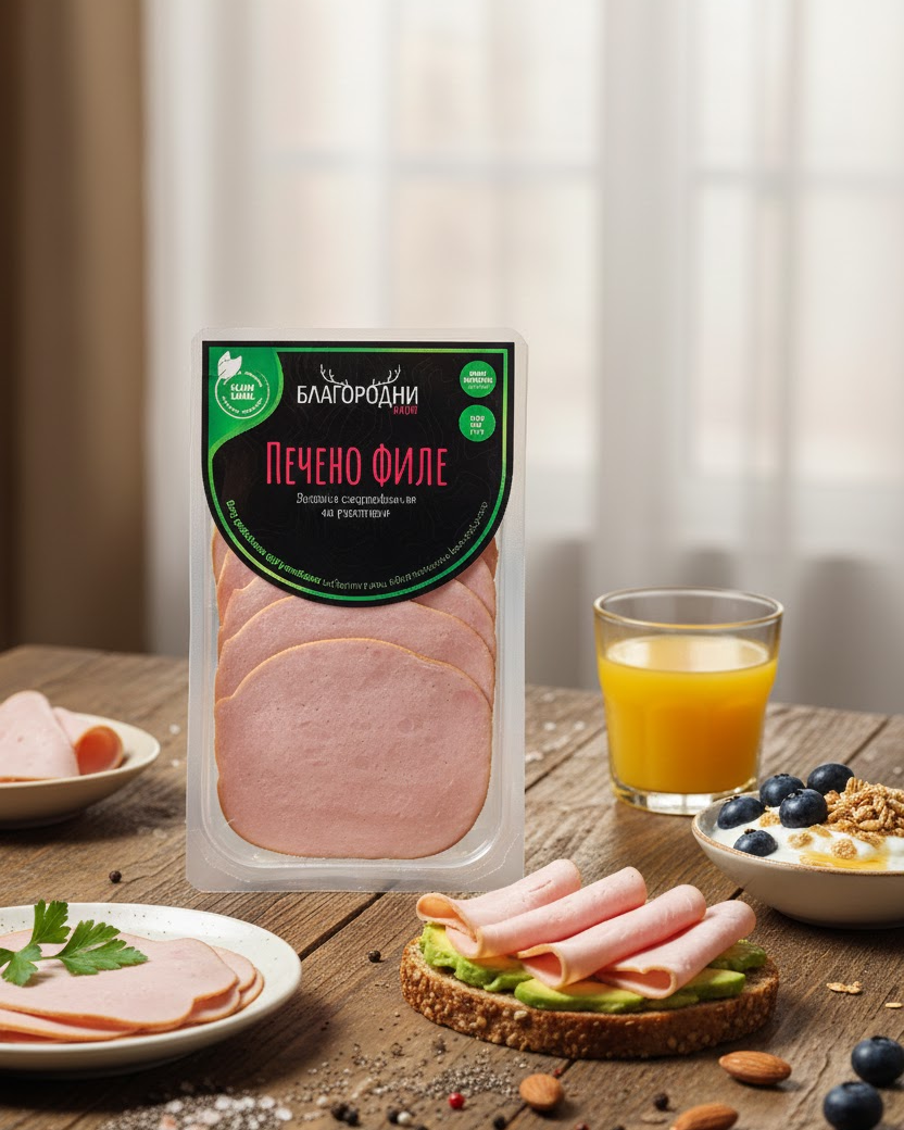 Печеното филе на „Благородни мезета“ е създадено за хора, които държат на произхода, състава и качеството на храната си. Произведено от първокласно свинско филе, с високо съдържание на протеин и ниско съдържание на мазнини, продуктът се отличава с чист, балансиран вкус и внимателно подбран състав, базиран на естествени екстракти и подправки. Без излишни добавки, без изкуствени оцветители, овкусители и консерванти.