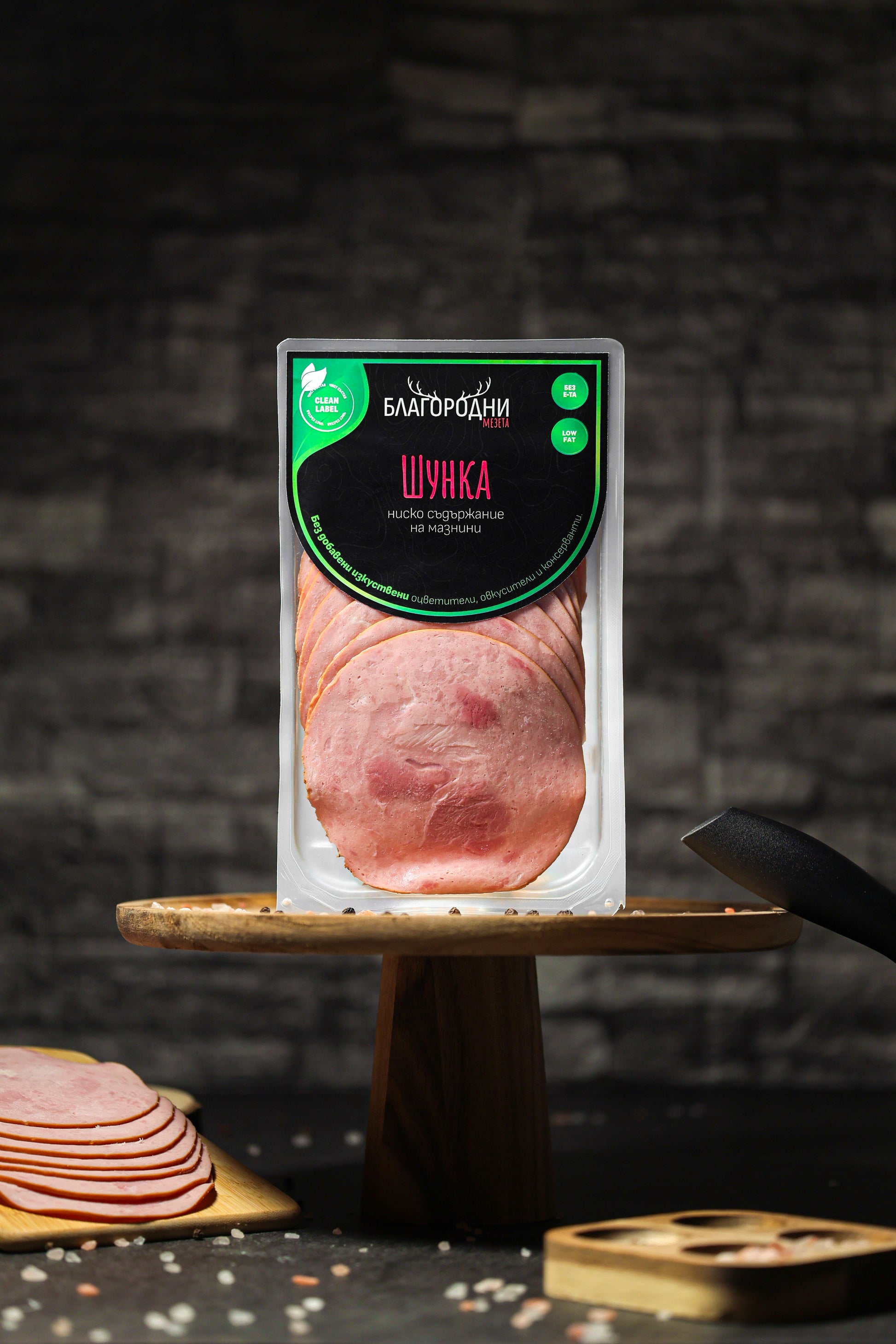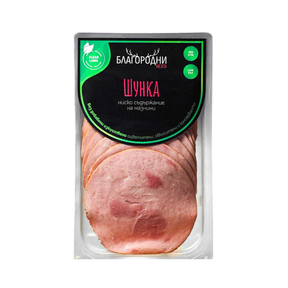 Шунката на „Благородни мезета“ е създадена за хора, които държат на произхода, състава и качеството на храната си. Произведена е от първокласно месо, с ниско съдържание на мазнини. Продуктът се отличава с чист, балансиран вкус и внимателно подбран състав, базиран на естествени екстракти и подправки. Без излишни добавки, без изкуствени оцветители, овкусители и консерванти. Без Е-номера